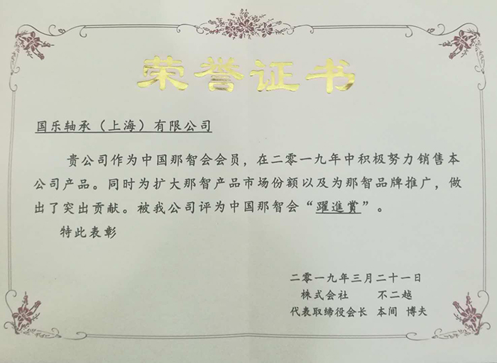 NACHI2019奖状